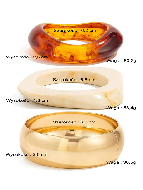 Bransoletki wykonane z wysokiej jakości żywicy zapewniają trwałość i eleganckie wykończenie, idealne do codziennego noszenia .