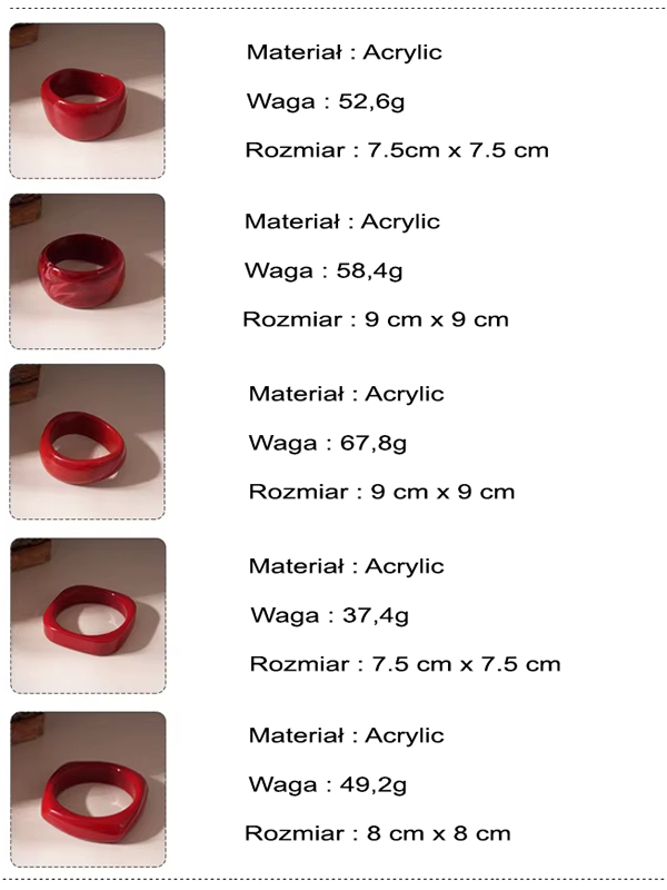 Bransoletki wykonane z wysokiej jakości żywicy zapewniają trwałość i eleganckie wykończenie, idealne do codziennego noszenia .